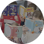 Die Klasse 5b beim Lesespaß mit Frau Lange von der Stadtbücherei, die ganz viele tolle Bücher dabei hatte: Abenteuer, Freundschaftsgeschichten, Detektive, Tiere, Fantasy, Sachbücher, Historisches, Fußball, Girls-Stories…